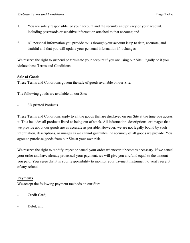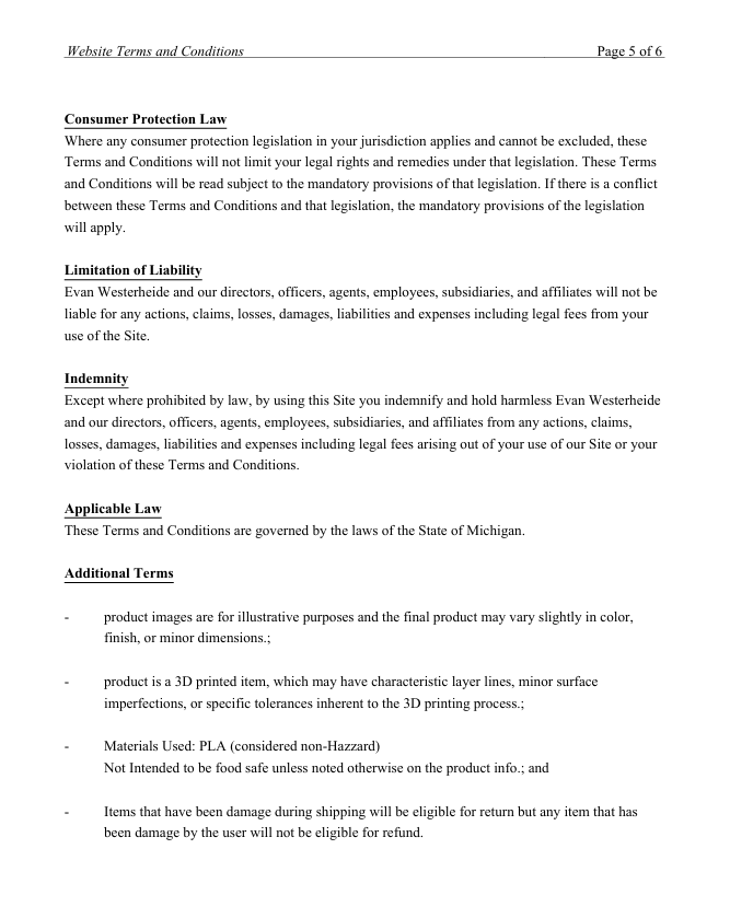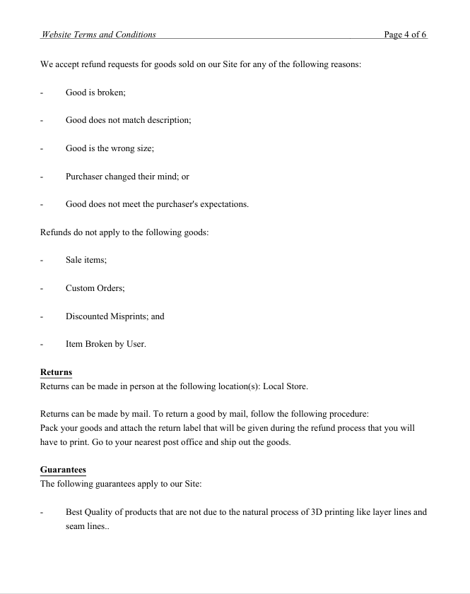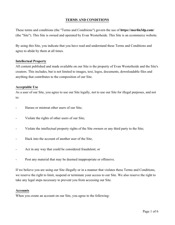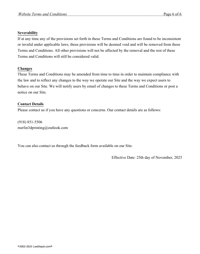 Below is the Terms and conditions for Merlin's 3D Printing website